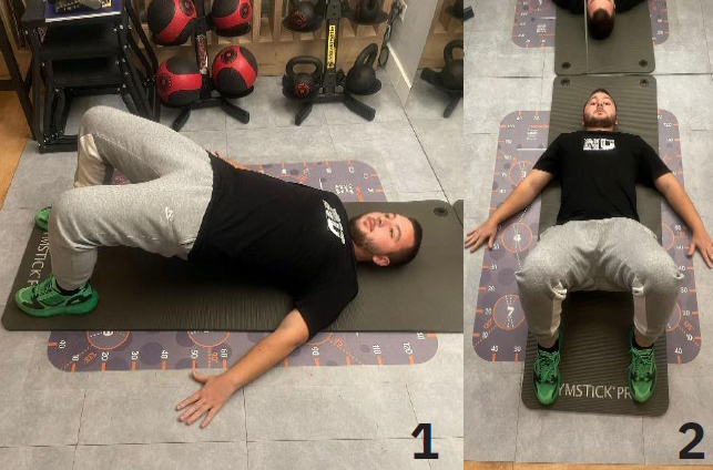 Decubit dorsal (pe spate) cu genunchii flexați și tălpile pe saltea, ridicarea